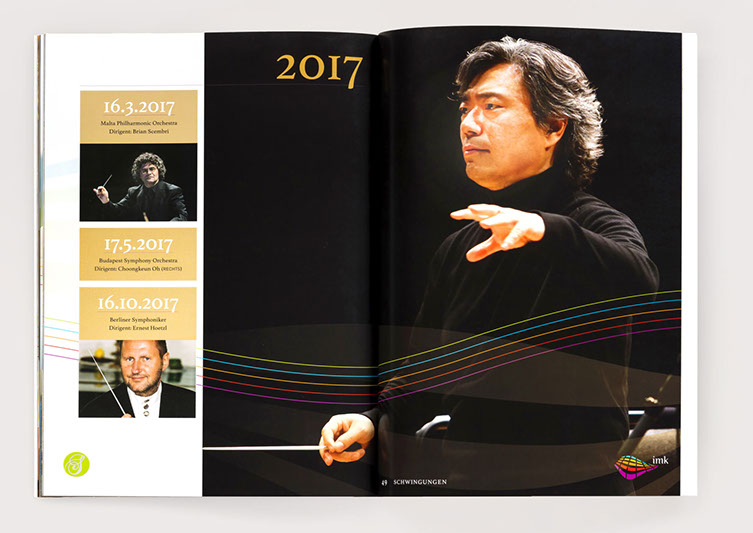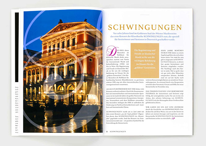 IMK – Association for International Music & Culture –– 60-page tribute highlighting 10-years of concerts in Vienna's "Goldene Saal" –– task: integrate musical flow and IMK brand in a vibrantly commemorative calling card –– role: consultation, concept, design, layout, production –– see more cultural >